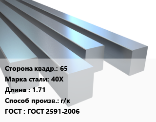 Квадрат стальной 65 Сталь: 40Х L=1.71 г/к ГОСТ 2591-2006