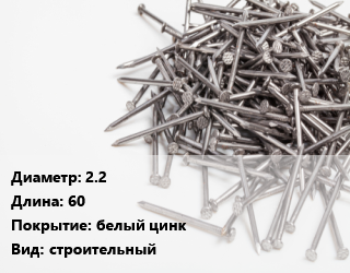 Гвоздь 2.2х60 белый цинк строительный, чертеж 7811-7075, кг цена от 72.51 Р / кг, где купить, условия доставки в Минске и Минской области