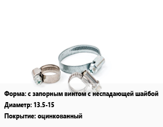 Хомут с запорным винтом с неспадающей шайбой D=13.5-15 оцинкованный, упаковка цена от 219.5 Р / шт, где купить, условия доставки в Минске и Минской области