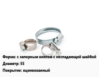 Хомут с запорным винтом с неспадающей шайбой D=55 оцинкованный
