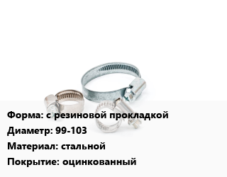 Хомут с резиновой прокладкой D=99-103 стальной оцинкованный, шт, крепежный цена от 1 011 Р / шт, где купить, условия доставки в Минске и Минской области