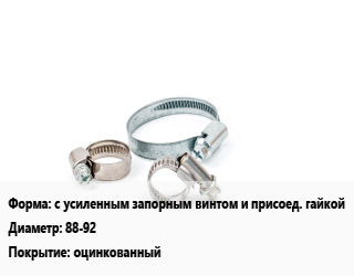 Хомут с усиленным запорным винтом и присоед. гайкой D=88-92 оцинкованный, упаковка цена от 219.5 Р / шт, где купить, условия доставки в Минске и Минской области