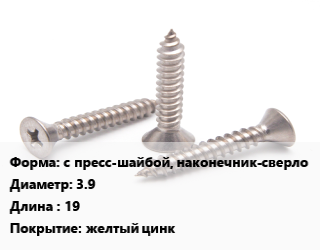 Саморез с пресс-шайбой, наконечник-сверло D=3.9 L=19 желтый цинк