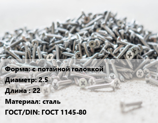 Шуруп с потайной головкой 2.5х22 сталь ГОСТ: ГОСТ 1145-80