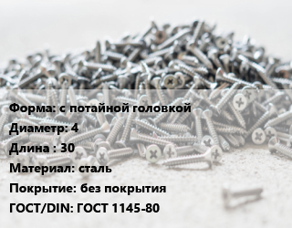 Шуруп с потайной головкой 4х30 сталь без покрытия ГОСТ: ГОСТ 1145-80