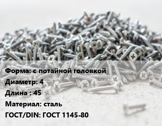 Шуруп с потайной головкой 4х45 сталь ГОСТ: ГОСТ 1145-80