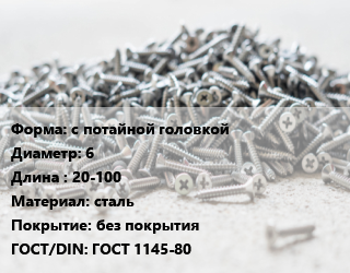 Шуруп с потайной головкой 6х20-100 сталь без покрытия ГОСТ: ГОСТ 1145-80
