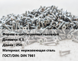 Шуруп с шестигранной головкой 6.3х250 нержавеющая сталь ГОСТ: DIN 7981, упаковка 1000 шт цена от 12 142 Р / кг, где купить, условия доставки в Минске и Минской области