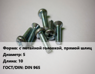 Винт с потайной головкой, прямой шлиц 5х10 DIN 965