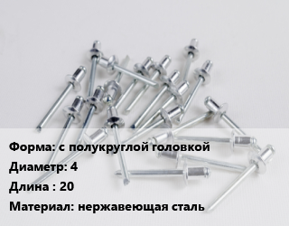Заклепка с полукруглой головкой 4х20 нержавеющая сталь, шт цена от 58.46 Р / шт, где купить, условия доставки в Минске и Минской области
