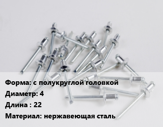 Заклепка с полукруглой головкой 4х22 нержавеющая сталь, шт цена от 110.45 Р / шт, где купить, условия доставки в Минске и Минской области