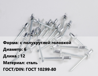 Заклепка с полукруглой головкой 6х12 сталь ГОСТ: ГОСТ 10299-80