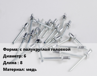 Заклепка с полукруглой головкой 6х8 медь, кг цена от 207.14 Р / шт, где купить, условия доставки в Минске и Минской области
