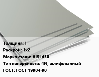 Лист нержавеющий 1 1х2 Сталь: AISI 430 Тип:4N, шлифованный ГОСТ 19904-90