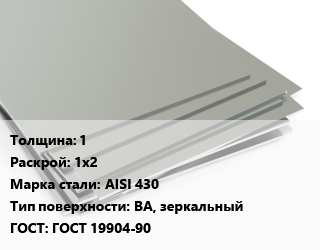Лист нержавеющий 1 1х2 Сталь: AISI 430 Тип:BA, зеркальный ГОСТ 19904-90