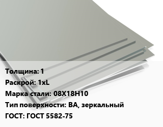 Лист нержавеющий 1 1хL Сталь: 08Х18Н10 Тип:BA, зеркальный ГОСТ 5582-75, х/к цена от 365 500 Р / т, где купить, условия доставки в Минске и Минской области