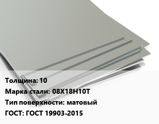 Лист нержавеющий 10 Сталь: 08Х18Н10Т Тип:матовый ГОСТ 19903-2015