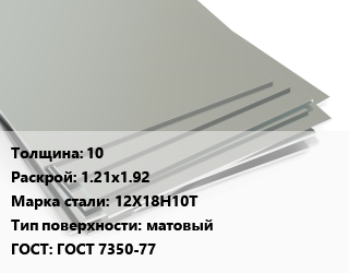 Лист нержавеющий 10 1.21х1.92 Сталь: 12Х18Н10Т Тип:матовый ГОСТ 7350-77