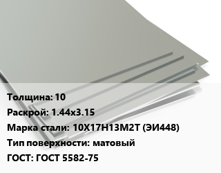 Лист нержавеющий 10 1.44х3.15 Сталь: 10Х17Н13М2Т (ЭИ448) Тип:матовый ГОСТ 5582-75