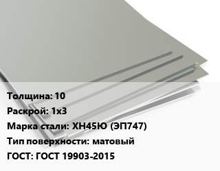 Лист нержавеющий 10 1х3 Сталь: ХН45Ю (ЭП747) Тип:матовый ГОСТ 19903-2015