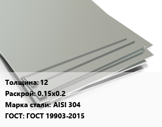 Лист нержавеющий 12 0.15х0.2 Сталь: AISI 304 ГОСТ 19903-2015