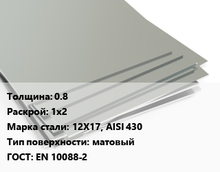 Лист нержавеющий 0.8 1х2 Сталь: 12Х17, AISI 430 Тип:матовый EN 10088-2, кг цена от 637.5 Р / т, где купить, условия доставки в Минске и Минской области