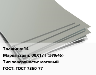 Лист нержавеющий 14 Сталь: 08Х17Т (ЭИ645) Тип:матовый ГОСТ 7350-77, шт цена от 29 339 Р / т, где купить, условия доставки в Минске и Минской области