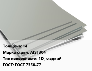 Лист нержавеющий 14 Сталь: AISI 304 Тип:1D, гладкий ГОСТ 7350-77, шт цена от 3 373 Р / т, где купить, условия доставки в Минске и Минской области