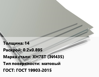 Лист нержавеющий 14 0.2х0.895 Сталь: ХН78Т (ЭИ435) Тип:матовый ГОСТ 19903-2015
