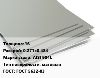 Лист нержавеющий 16 0.271х0.484 Сталь: AISI 904L Тип:матовый ГОСТ 5632-83