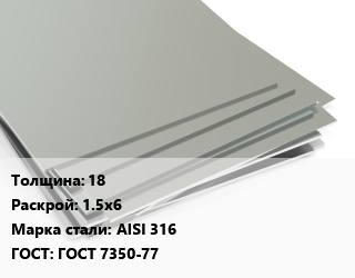 Лист нержавеющий 18 1.5х6 Сталь: AISI 316 ГОСТ 7350-77