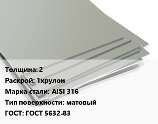Лист нержавеющий 2 1хрулон Сталь: AISI 316 Тип:матовый ГОСТ 5632-83