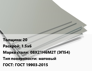 Лист нержавеющий 20 1.5х6 Сталь: 08Х21Н6М2Т (ЭП54) Тип:матовый ГОСТ 19903-2015
