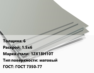 Лист нержавеющий 6 1.5х6 Сталь: 12Х18Н10Т Тип:матовый ГОСТ 7350-77