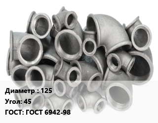 Отвод чугунный 125 Угол:45 ГОСТ 6942-98, шт цена от 652.32 Р / шт, где купить, условия доставки в Минске и Минской области