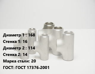Тройник стальной 168х16 -114х14 Сталь: 20 ГОСТ: ГОСТ 17376-2001