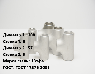 Тройник стальной 108х6 -57х5 Сталь: 13хфа ГОСТ: ГОСТ 17376-2001