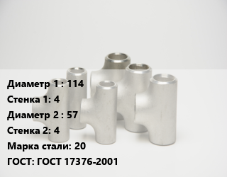 Тройник стальной 114х4 -57х4 Сталь: 20 ГОСТ: ГОСТ 17376-2001