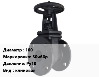 Задвижка чугунная 100 30ч66р Ру10 клиновая, шт цена от 50 568 Р / шт, где купить, условия доставки в Минске и Минской области