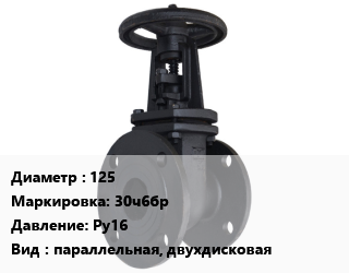 Задвижка чугунная 125 30ч6бр Ру16 параллельная, двухдисковая